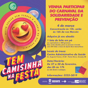 A troca do abadá irá ocorrer nos dias 27 e 28, ou seja, quarta e quinta-feira da próxima semana, a partir das 8 horas, segundo informou Almir Santana. “Esperamos contar com a participação da sociedade e dos trabalhadores da Secretaria de Saúde para que, juntos, possamos passar a mensagem da prevenção e da solidariedade enquanto brincamos o Carnaval”, reforçou o gerente.