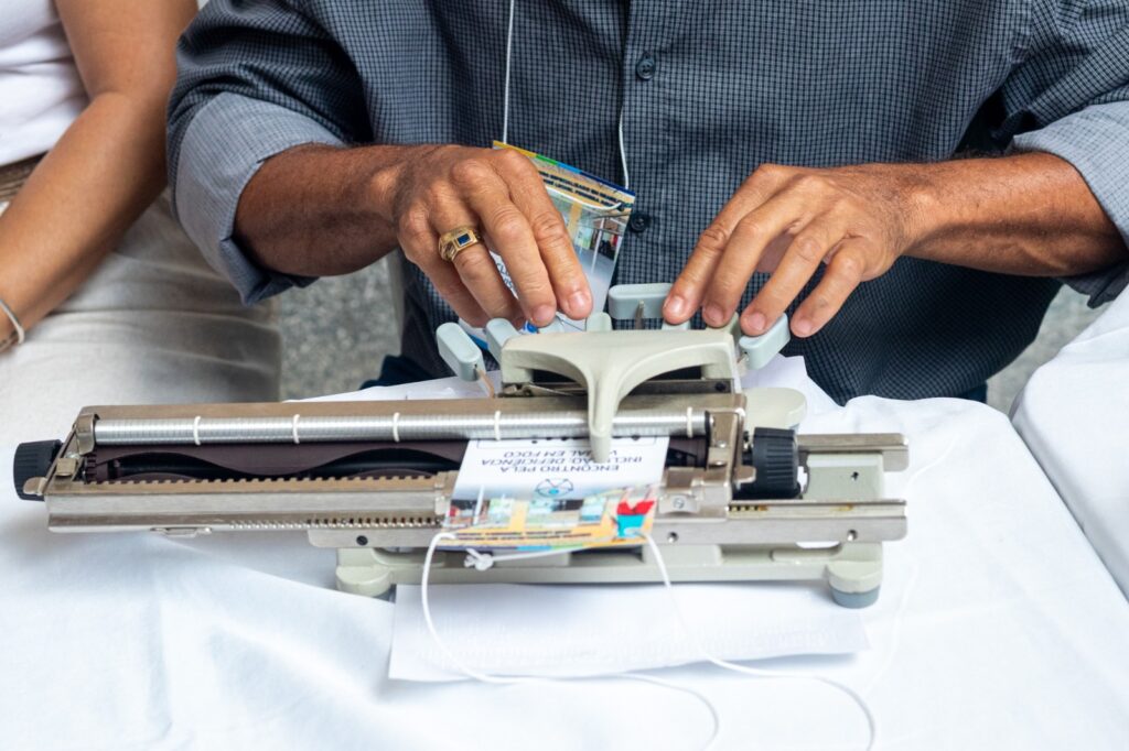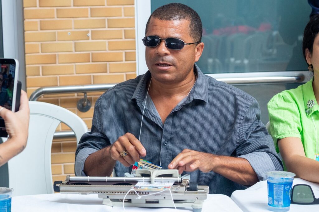 O pedagogo de Braille, José Wellington dos Santos, esteve no CER IV, realizando o registro do nome dos participantes em suas credenciais. “O uso da máquina facilita muito nosso trabalho, porque antes a gente dependia só da reglete, o que exigia muito esforço. Eu mesmo cheguei a criar calo na mão. A chegada dessa máquina trouxe rapidez, agilidade e melhor qualidade na comunicação. A importância desse encontro é justamente para mostrar à sociedade que existimos e queremos ser vistos”, destacou.