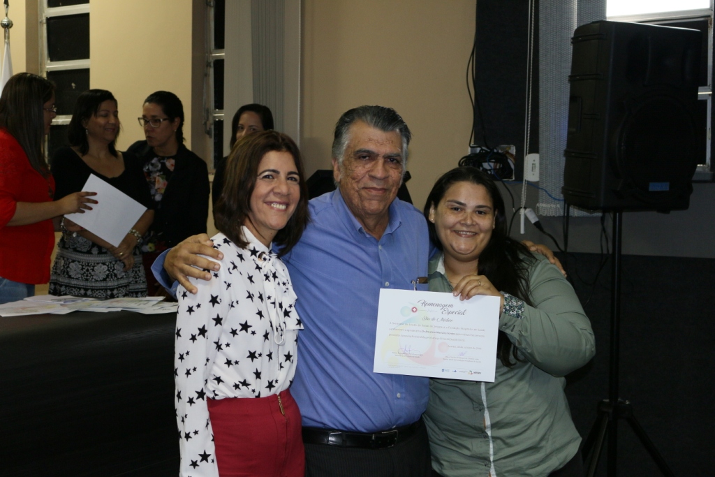 Profissionais que atuam há mais de 30 anos no Sistema Único de Saúde (SUS) foram homenageados nesta terça-feira, 18 de outubro, pelo Dia do Médico. O seleto grupo foi escolhido para representar todos os médicos sergipanos, ressaltando a dedicação e o cuidado que cada um deles tem no dia-a-dia com os pacientes. Os veteranos receberam da Secretaria de Estado da Saúde (SES) e da Fundação Hospitalar (FHS) um certificado pelos relevantes serviços prestados à população.