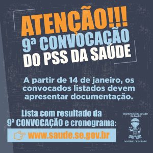 A partir desta segunda-feira, 14, uma nova convocação para o preenchimento de vagas do Processo Seletivo Simplificado (PSS) da Fundação Hospitalar de Saúde (FHS), entra em vigência. É a nona convocação, que desta vez chama 387 candidatos aprovados, sendo 177 de nível superior e 210 de níveis médio e técnico, segundo informou o diretor Operacional da FHS, Ives Déda Gonçalves. Um calendário com datas e horários de apresentação dos interessados está na página www.saude.se.gov.br. A data limite para apresentação da documentação é o dia 18 de janeiro, até às 16 horas.