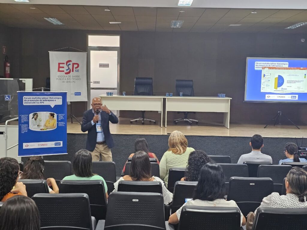 A Secretaria de Estado da Saúde (SES), por meio da Fundação Estadual de Saúde (Funesa) e da Escola de Saúde Pública de Sergipe (ESP-SE), promoveu, nesta quarta-feira, 19, o Fórum Multidisciplinar: Uma Estratégia de Prevenção do Sobrepeso e Obesidade na Atenção Primária à Saúde (APS). A iniciativa reuniu equipes da Atenção Primária com o objetivo de fortalecer o cuidado oferecido à população, ampliando a capacidade de identificar, acompanhar e encaminhar usuários com excesso de peso.