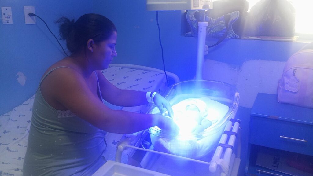 O tratamento mais utilizado é a fototerapia, conhecida carinhosamente pelas mães como ‘banho de luz’. “A fototerapia utiliza luz, especialmente no espectro azul, que é absorvida pela pele do recém-nascido. Essa luz transforma a bilirrubina em substâncias que podem ser eliminadas naturalmente pela urina e pela bile, sem necessidade de metabolização pelo fígado. É um tratamento seguro, eficaz e amplamente utilizado no mundo inteiro”, detalhou a neonatologista.