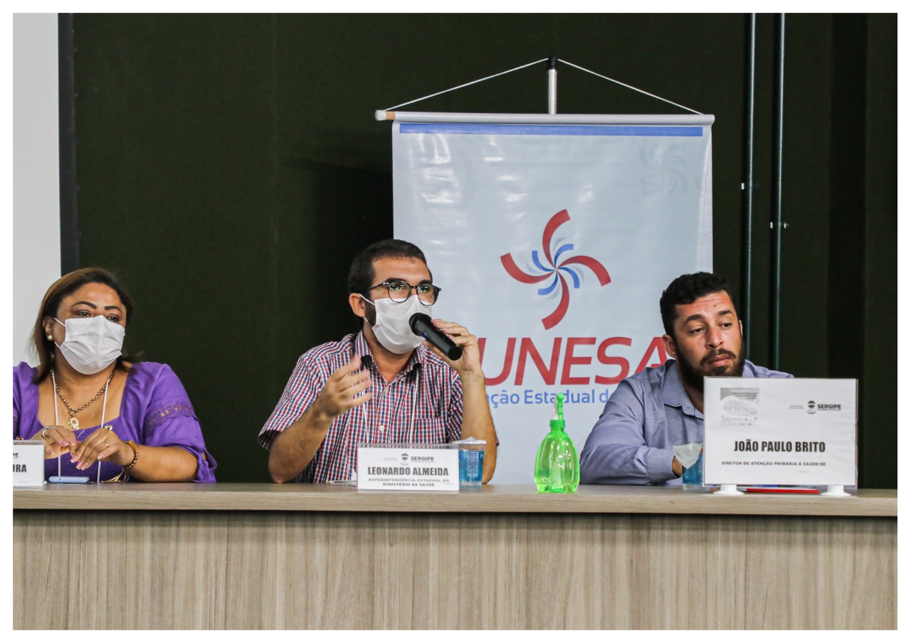 O evento foi idealizado e organizado pela Gerência de Ações Programáticas da Coordenação Estadual de Atenção Primária à Saúde, em colaboração com o Núcleo Educação em Saúde da SES e apoio logístico e parte metodológico da Fundação Estadual de Saúde (FUNESA). No turno da manhã a mesa foi composta pela professora Tereza Raquel Sena (UFS), Leonardo Ferreira de Almeida (Ministério da Saúde em Sergipe), Lavínia Aragão (Funesa), Elisônia Moura (Conasems/Cosems). Além destes, dos representantes do Ministério da Saúde Christiane Santos Matos e Daniel Amado (CNPICS/MS) que participaram de maneira remota.
