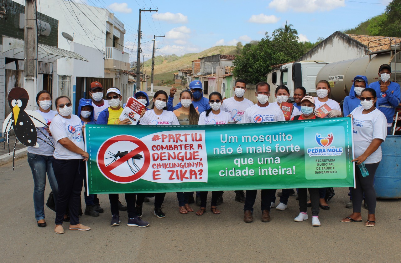 Pedrinhas realizou um mutirão contra a dengue e, com os agentes de endemias, trabalhou a eliminação de criadouros no cemitério e terrenos baldios e fez panfletagem no comercial e nas escolas. Pedro Mole realizou o mutirão de limpeza contra a dengue nesta última quinta-feira. Para isso, solicitou à população a limpeza do quintal e a colocação nas calçadas de todo material sem utilidade que pudesse servir de criadouro.
