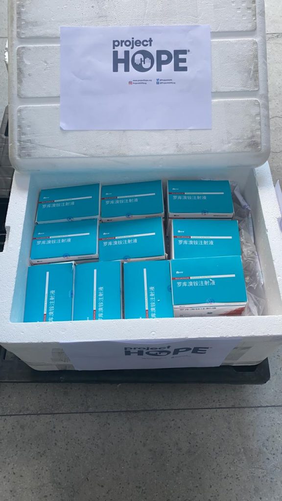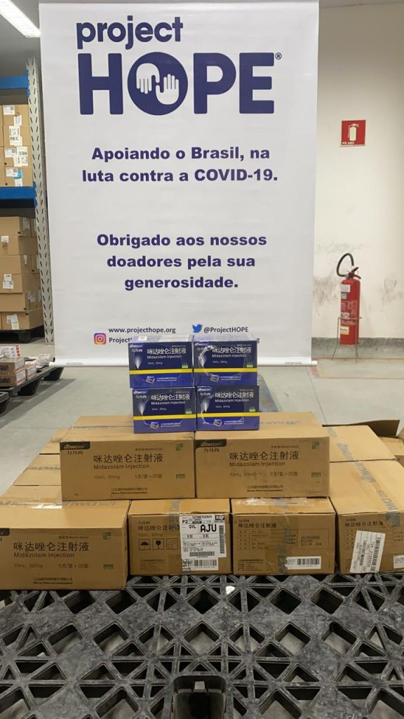 Durante a pandemia da Covid-19, muitas empresas e entidades se solidarizaram com a crise mundial e doaram insumos para serem utilizados nas unidades hospitalares. A Secretaria de Estado da Saúde (SES) recebeu algumas doações, a última foi do Project Hope, que enviou a SES três medicamentos que compõem o kit intubação, sendo o midazolam, propofol, (os dois são sedativos) e rocurônio (relaxante muscular), além de um respirador mecânico.