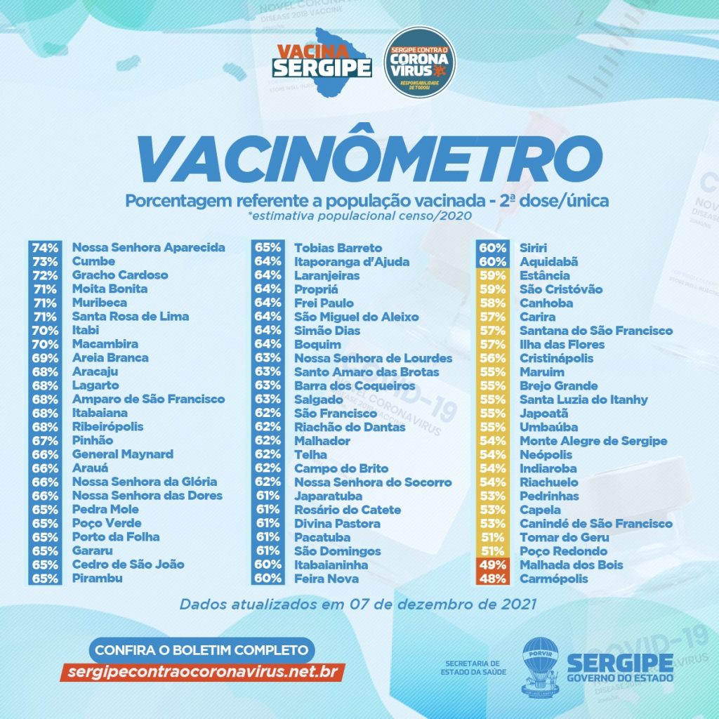 A Secretaria de Estado da Saúde, através do boletim epidemiológico, informa que nesta terça-feira (07), foram registrados sete novos casos de Covid-19 e um óbito. No total, 278.329 pessoas testaram positivo para a doença e 6.048 morreram. O óbito confirmado foi um homem, 57 anos, de Nossa Senhora do Socorro, com hipertensão, diabetes, doença renal crônica e pneumopatia.