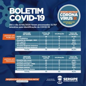 As duas mulheres são: 68 anos de idade de Aracaju, que tinha neoplasia de pâncreas; e 52 anos de Umbaúba. São 2.177 pessoas curadas até o momento. Foram realizados 13.797 exames e 9.063 foram negativados. Estão internados 177 pacientes, sendo 75 em leitos de UTI (32 na rede privada e 43 na rede pública) e 95 em leitos clínicos (27 na rede privada e 68 na rede pública). O Estado passa a ter 76 óbitos por Covid-19.