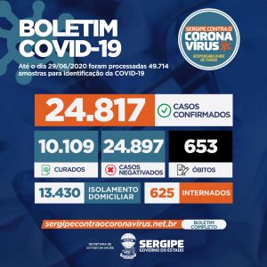 A Secretaria de Estado da Saúde (SES) divulga nesta segunda-feira, 29, o boletim epidemiológico do coronavírus, com 396 novos casos e 33 óbitos. Em Sergipe, 24.817 pessoas já testaram positivo para a COVID-19 e 653 morreram.