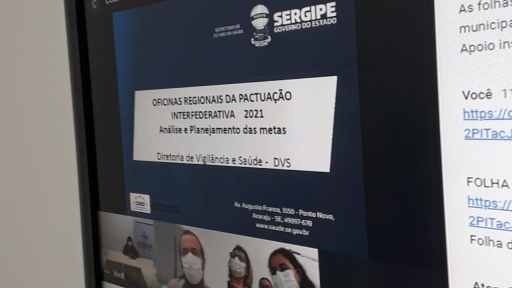Com o objetivo de atender o que preconiza a Resolução CIT nº 8 – de 24 de novembro de 2016, que dispõe sobre o processo nacional de pactuação interfederativa, a partir da definição das metas municipais que subsidiarão os indicadores do Estado de Sergipe para este ano, a Secretaria de Estado da Saúde (SES) iniciou, nesta segunda-feira ,26, a Oficina Anual da Pactuação Interfederativa 2021, junto aos municípios sergipanos. Realizada em parceria com a Fundação Estadual de Saúde (Funesa), a ação remota segue nos dias 27, 29 e 30 de abril, além de 03 e 04 de maio.